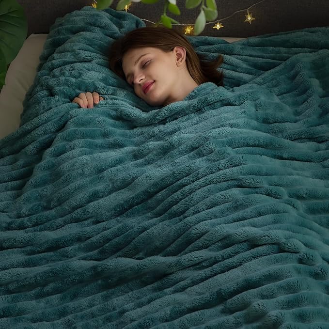 NEWCOSPLAY Super Soft Queen Blanket Light Teal Premium Silky Flannel Fleece 3D Ribbed Jacquard Lightweight Bed Blanket All Season Use (Light Teal Ribbed, Queen(90"x90"))