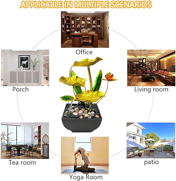 - 【Meditation Relaxation Effect】: The water in this tabletop fountain flows gently down from the top, through the layers of lotus leaves, and finally into the rock bed. It is like the sound of a waterfall, crisp and clear, as if bringing the beauty and serenity of nature into your home.