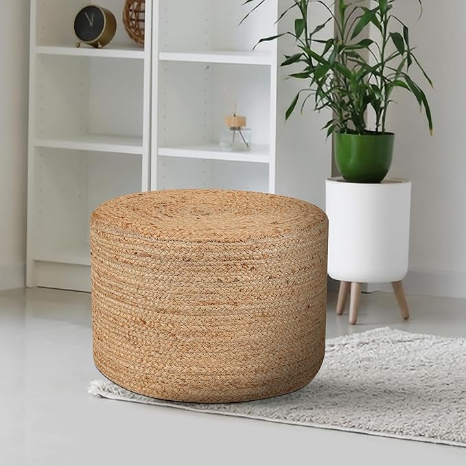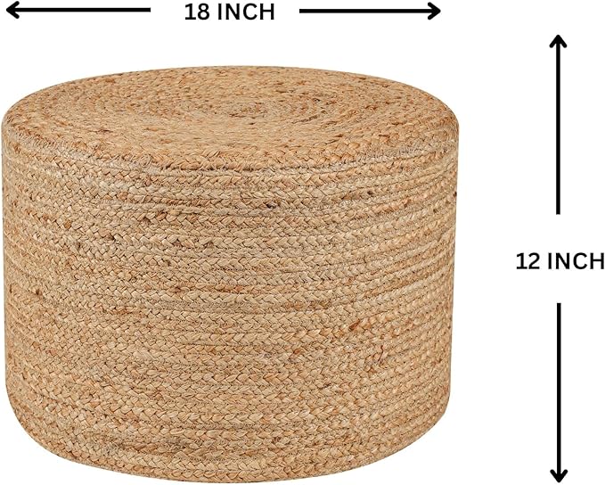 Jute Pouf Ottoman - Briaded Boho Pouf Ottoman Foot Rest - Poofs/Ottomans Furniture Decor - Ottomans Pouffe for Bedroom - Poufs for Living Room - (18"x18"x12")