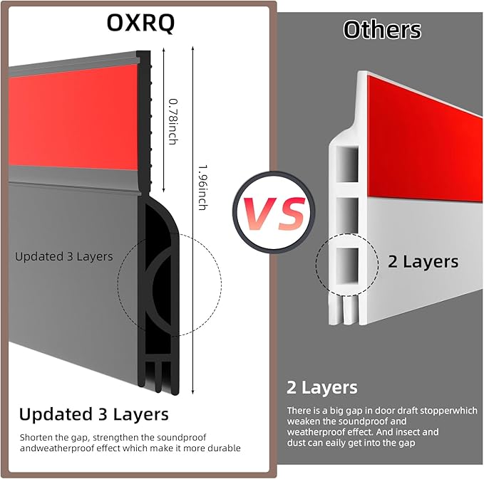 - 【Upgrade Backing Adhesive Design】: Under door draft blocker widened backing adhesive is widened, close fit. The under door seal strip boasts unmatched water resistance and adhesion. It's very useful for light, dirt, leaves, snow, smell and animals; You needn't worry about it will fall off even in the worst storms!