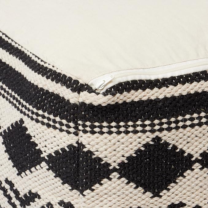 REDEARTH · Tufted Pouf Ottoman with Filler Textured Storage Cube Bean Bag Pouffe Footrest for Living Room, Bedroom, Nursery, Kidsroom; 100% Cotton (17.5"X17.5"X17.5", Linear Diamond Black)