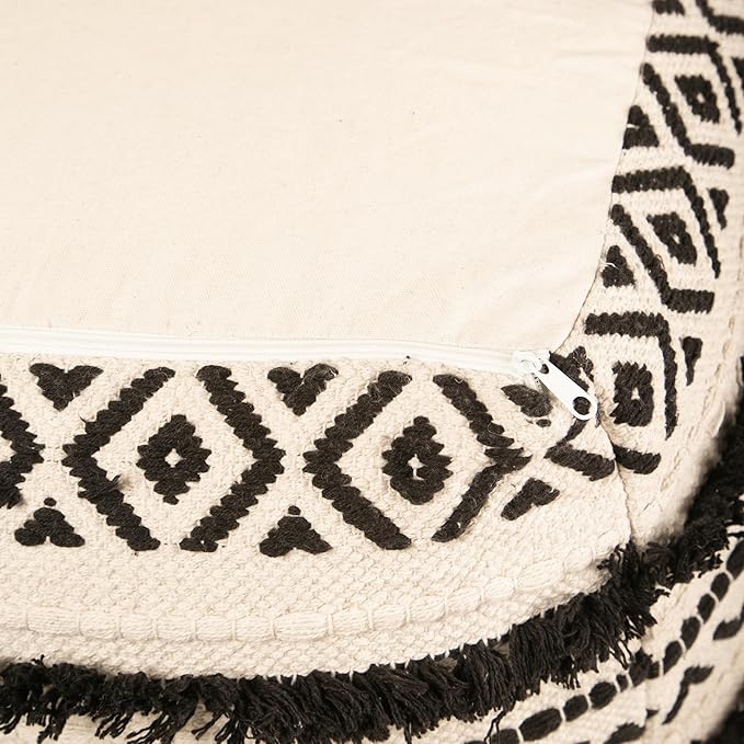 - BEAUTIFULLY DESIGNED AND HANDCRAFTED: The 100% cotton indoor patio Poof comes in a variety of textured patterns that is made on handlooms by skilled artisans offering an excellent choice for foot stool and a convenient way to add comfort and style to your space. Choose your indoor hassock from wide options available that are handcrafted by mix and match of weaves, tassels and prints. It compliments modern, contemporary, boho or farmhouse decor.