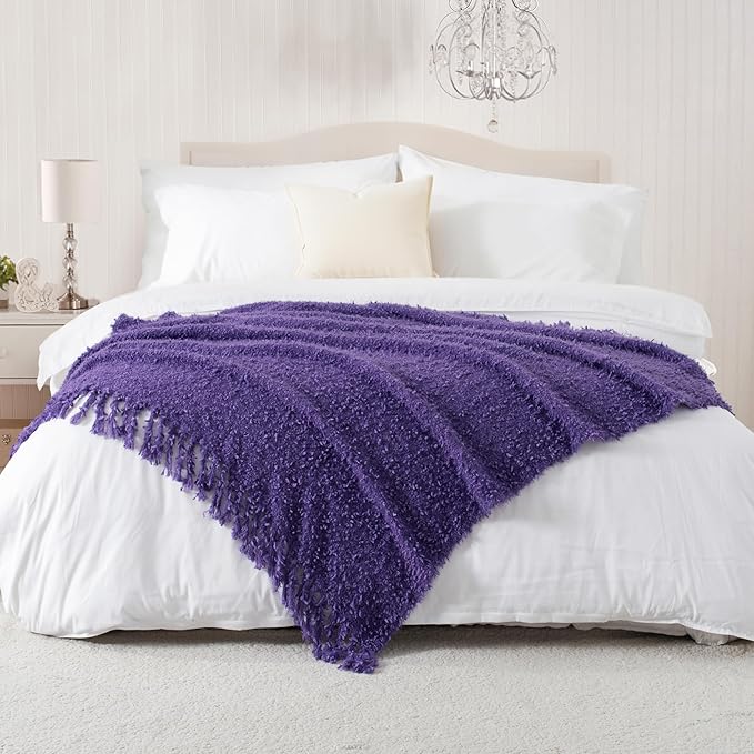 Winter Knit Throw Blanket Fluffy Fuzzy Soft Lightweight Cozy Farmhouse Tassels Chunky Knitted Throws for Couch Sofa Bed (Purple, 60"x80")