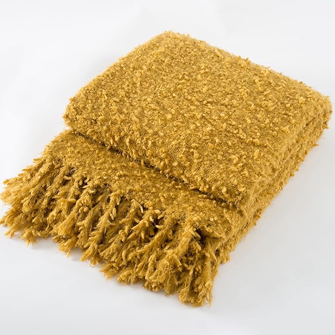 Winter Knit Throw Blanket Fluffy Fuzzy Soft Lightweight Cozy Farmhouse Tassels Chunky Knitted Throws for Couch Sofa Bed (Mustard Yellow, 60"x80")
