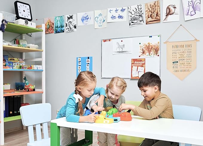 Playroom Rules-Wall Decor Gifts for Baby Boy Girl Kids-Canvas Hanging Flag Pennant Banner Wall Decor Gifts for Nursery Homeschool Baby Room Playroom Reading Room Bedroom Front Door