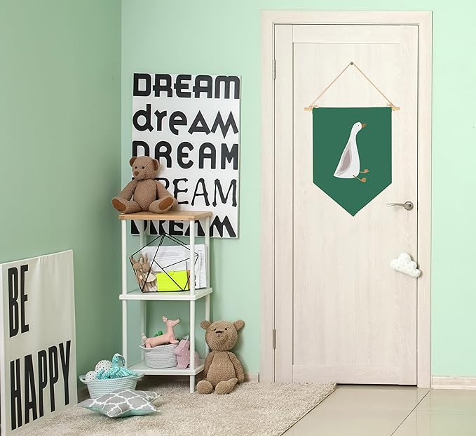 Silly Goose Wall Art,Farm Animal-Cute Goose Flag Wall Decor Gifts for Baby Girls Boys Kids-Canvas Hanging Pennant Banner Wall Sign Gifts for Nursery Baby Room Playroom Reading Room Bedroom Front Door