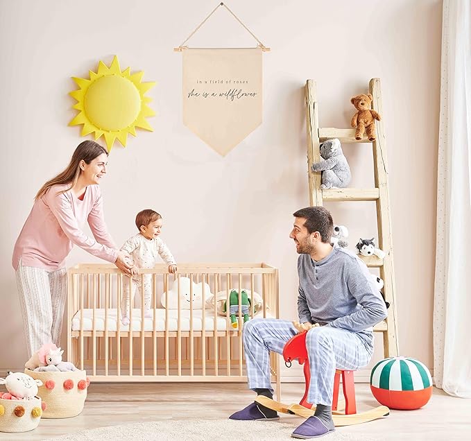 In a Field of Roses She is a Wildflower-Wall Decor Gifts for Baby Girls Kids-Canvas Hanging Pennant Banner Wall Decor Gifts for Nursery Baby Room Playroom Homeschool Reading Room Bedroom Front Door