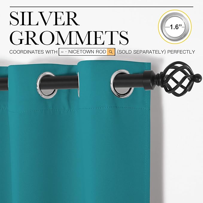 NICETOWN Room Darkening Curtains 95 inch Length 2 Panels, Thermal Insulated Grommet Blackout Curtains for Modern Casual Elegant Bedroom Kids Room Theme Decoration (Peacock Teal, 2 Pieces, W42)