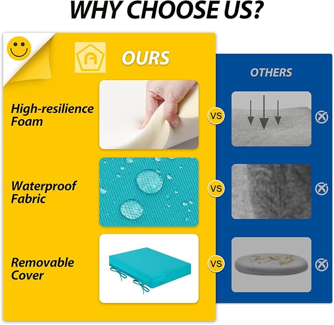 - Non-slip Ties & Anti-Slip Bottom: Easy-to-use ties and a non-slip bottom keep your outdoor cushion firmly in place, so you can sit comfortably without slipping, relax with confidence, and enjoy your outdoor space safely and stress-free