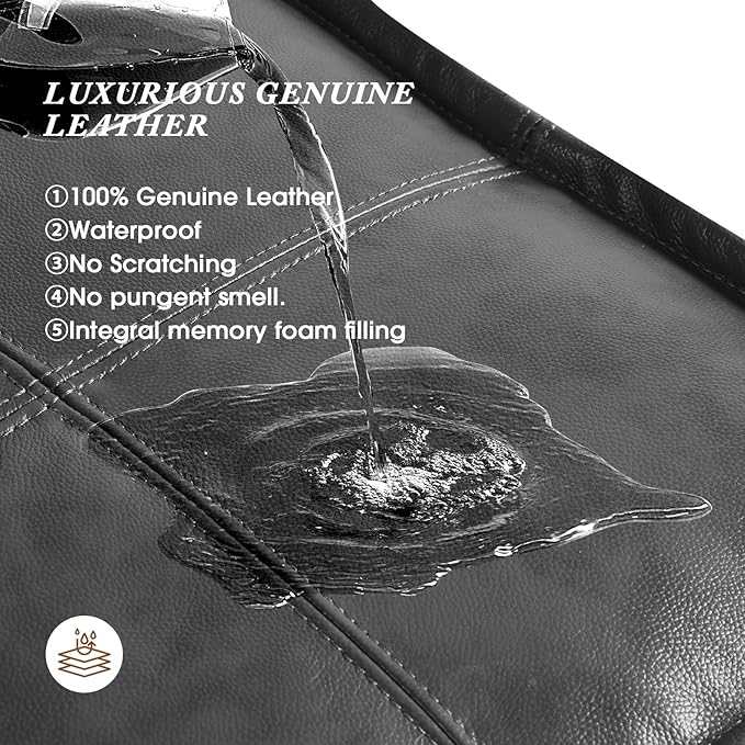 Leather Ottoman,Handmade Stuffed Square Ottoman,Genuine Leather Pouf, Foot Rest Pouf,Comfortable Soft Seating for Living Room & Bedroom (Grey, Square)