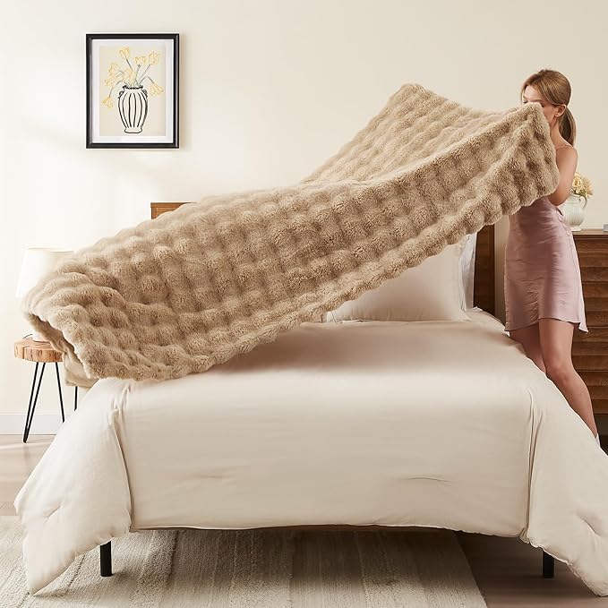 - Stylish & Home Decor: Our faux fur throw blanket is uniquely designed with a bubble shaped high and low wave design, along with the fluffy all-polyester faux rabbit fur gives this thick blanket an extra upscale and stylish look that blends effortlessly with any interior style, whether it's in a bedroom, living room, guest room, sofa, or couch, this flufy fur throw blanket will undoubtedly be a showstopper