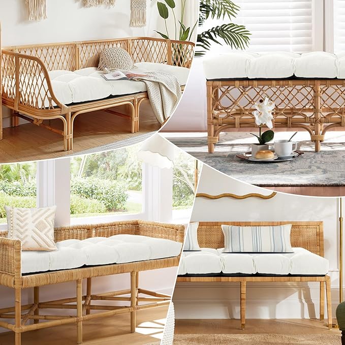 Bench Cushion 45 Inch - Chenille, High-Density Memory Foam, Non-Slip Bottom, Soft Durable Indoor Tufted Long Seat Cushion for Window Garden Furniture (White, 45x18x4 Inch)