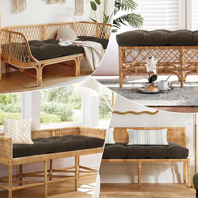 Bench Cushion 48 Inch - Chenille, High-Density Memory Foam, Non-Slip Bottom, Soft Durable Indoor Tufted Long Seat Cushion for Window Garden Furniture (Deep Brown, 48x16x4 Inch)