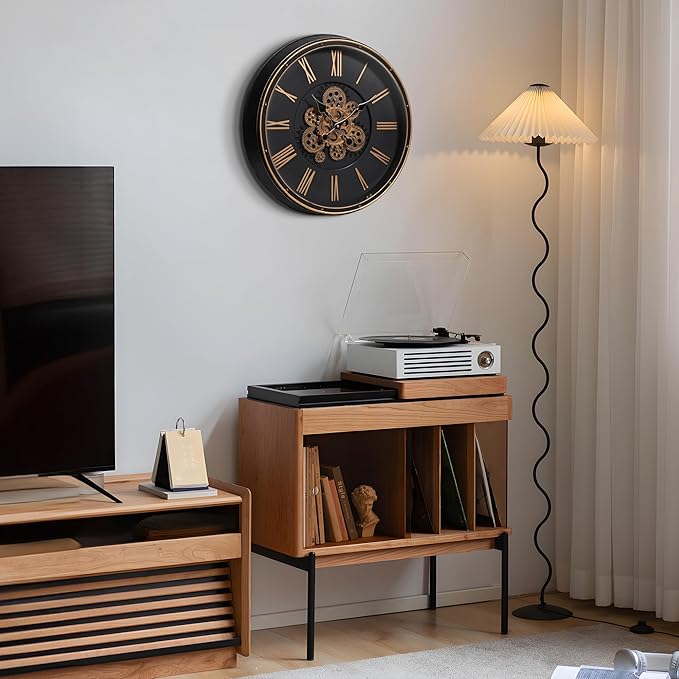 - [Silent Wall Clock ] Precision and Quiet Movement,based on high-torque, quality quartz movement, it function as beautiful wall decor pieces besides telling time, and bring both style and purpose to any room. Sit and watch the time fly by with this stunning gear clock.