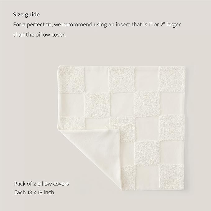 Double Stitch Checkered Throw Pillow Covers - 100% Cotton Set of 2 Tufted Boho Decorative Pillow Covers 18x18, Made in India, Square Cushion Case, Modern Home Decor for Couch, Sofa, Living Room, Cream