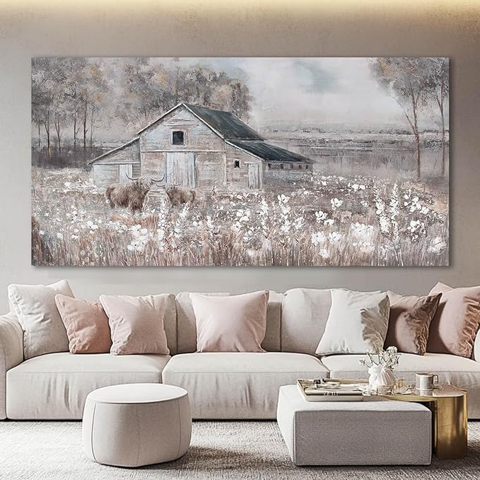 SDYA Cow Home Wall Decor Floral Canvas Print Room Decorations 29"x58" Large Pictures for Living Room Wall Art for Dining Room Area