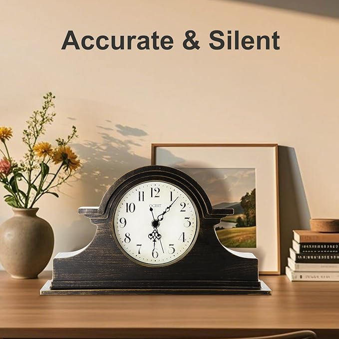 - Size & Suitable Scenes: Measuring 13 x 7.5 inches, this mantel clock is the perfect size for tabletops, shelves, and desks. It fits seamlessly into various settings, including living rooms, offices, and bedrooms, or as a decorative piece in kitchens and entryways. Its adaptable design makes it an excellent accent for any space