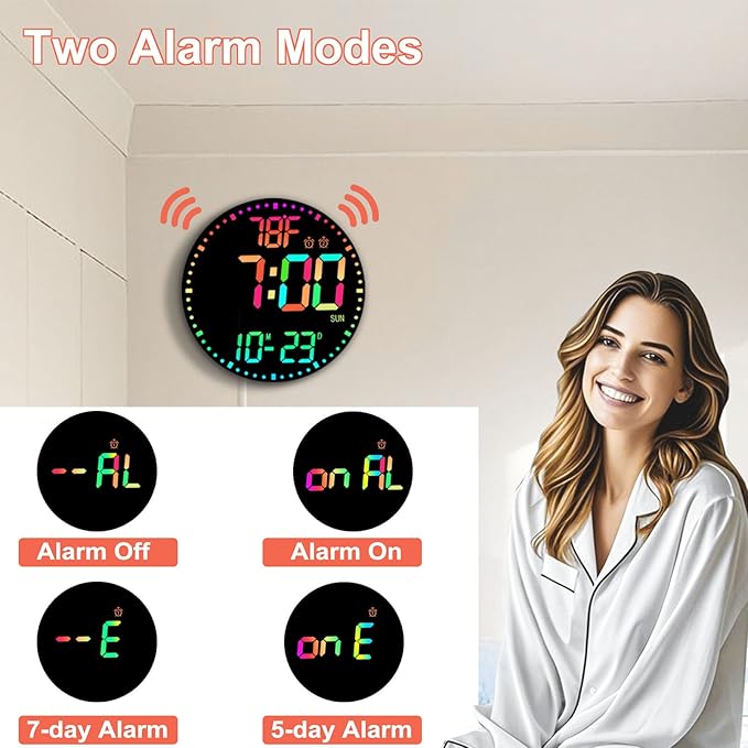 - Dynamic RGB Color Change----- Enjoy 12 vibrant color patterns with the LED digits and letters. Use the handy remote to switch between single or alternating colors, adding a splash of color to any room