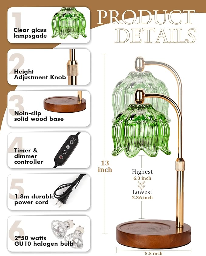 - Height Adjustable & Stable Base: The elegant wooden base(D"4.72in) ensure its stability, making you feel safer when using this candle warmer lamp for jar candles. With adjustable height function(H"2.36-4.72 in), this candle warmer lamp is suitable for all candle sizes.
