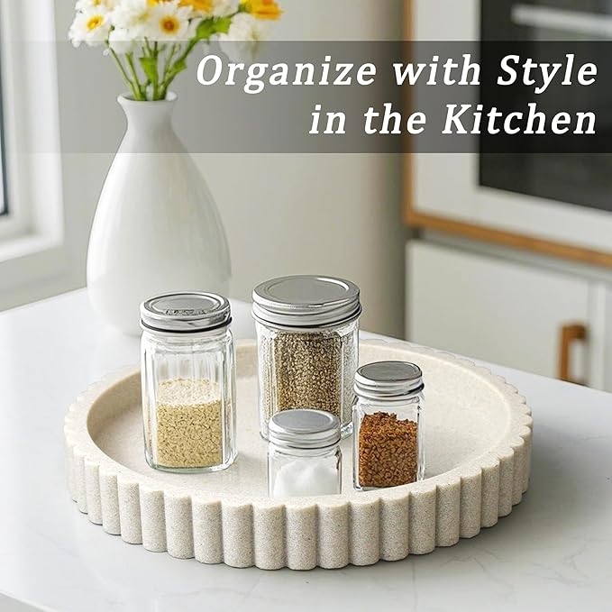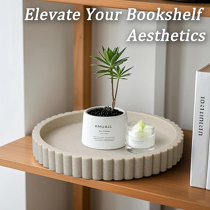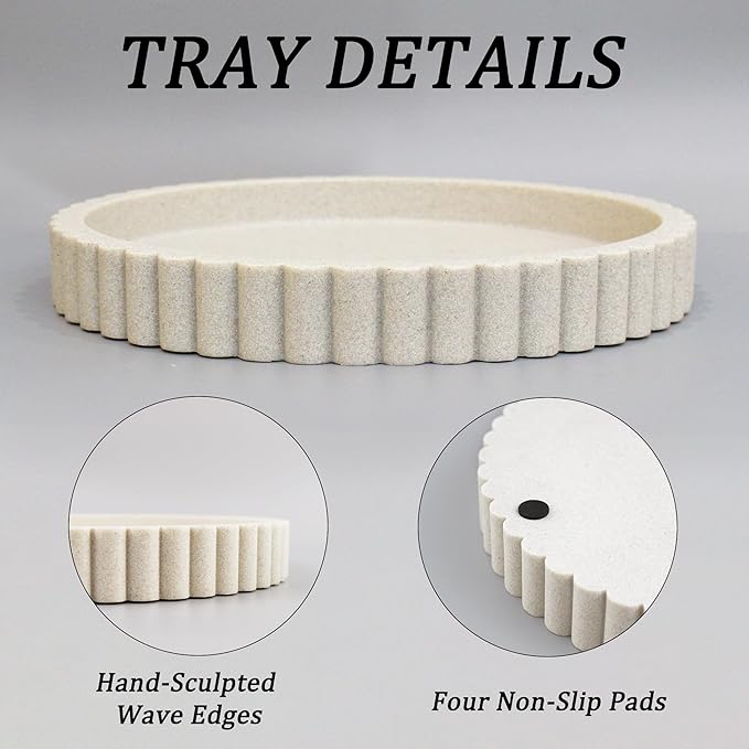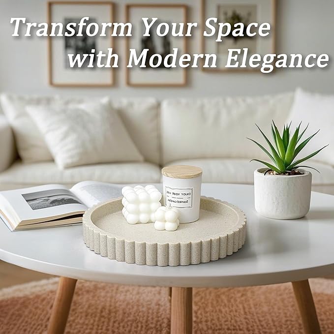 - Modern Tray for Coffee Table Decor: Designed for contemporary homes, this 11-inch round tray features a sculpted wave edge and minimalist design. Perfect as a coffee table tray, it adds texture and elegance to any living room setup.