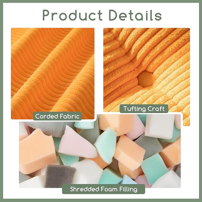- HIGOGOGO bean bags are made from ultra-soft and durable corduroy, a fabric that resists wear and tear, ensuring your bean bag chair will remain comfortable and cozy for years to come