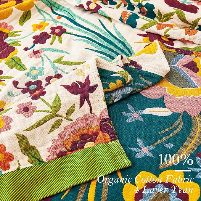 - CERTIFIED SAFE & ECO-FRIENDLY: Authentic eco-friendliness you can trust! Unlike conventional throws,OEKO-TEX certified cotton guarantees safe softness, while GOTS organic & GRS recycled certifications make this boho floral-inspired blanket an ethical home decor choice for eco-conscious families