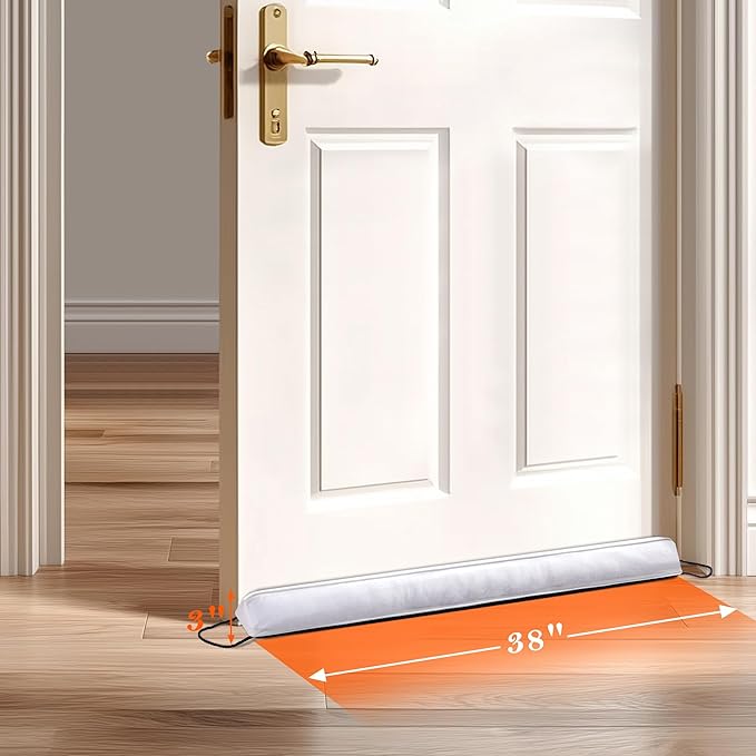 Sunolga 38 Inch Door Draft Stopper with Removable Cover for Gaps Up to 3 Inch, Machine Washable Noise and Air Blocker for Bottom of Door and Window, White