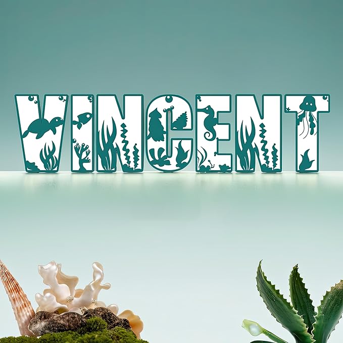 Name Sign For Nursery, Boho Nursery Sign, Family Name Signs, 3D Wall Art for Children & Kids Rooms, Baby Shower, First birthday gift (Sea Animals)