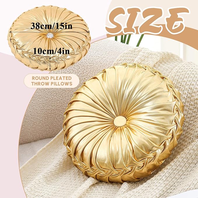 1 Pcs Round Throw Pillows Decorative Polyester Pleated Throw Pillows 15'' Diameter Accent Pumpkin Boho Chair Cushion for Couch Sofa Home Decoration (Gold)