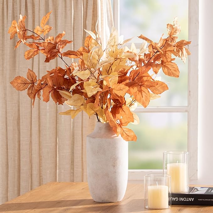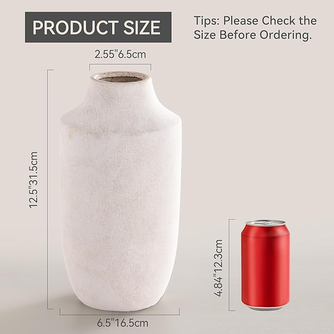 - 【Vase For Multiple Home Decor Styles】You can use this farmhouse vase enhance the beauty of room by decorating your living room, bookshelf, fireplace, entryway table with these off-white vases. The tall flower vase is versatile and suitable for a wide range of home decor styles such as classic, traditional, farmhouse, vintage, minimalist or bohemian.
