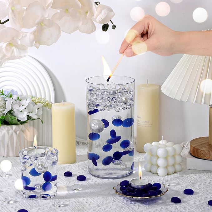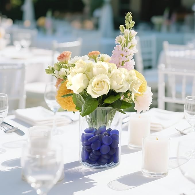 SUREAM Glass Beads for Vases, 0.8LB Deep Blue Glass Marbles Bulk for Vases, Flat Marbles for Centerpiece Decor, Table Scatter, Floral Supplies, DIY Crafts