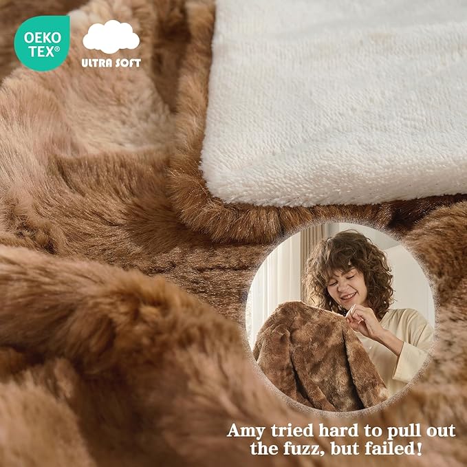 - Ultra Soft & Cozy Faux Fur Blanket – Crafted with ultra-soft 400GSM faux rabbit fur and 200GSM silky flannel reverse, this luxury faux fur throw blanket offers plush comfort and warmth. Ideal for cold nights on the bed, sofa, or recliner, it elevates any space as a decorative cozy blanket. OEKO-TEX 100 certified for safe and skin-friendly use.