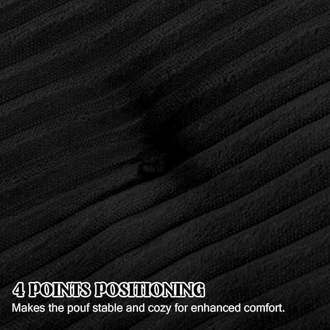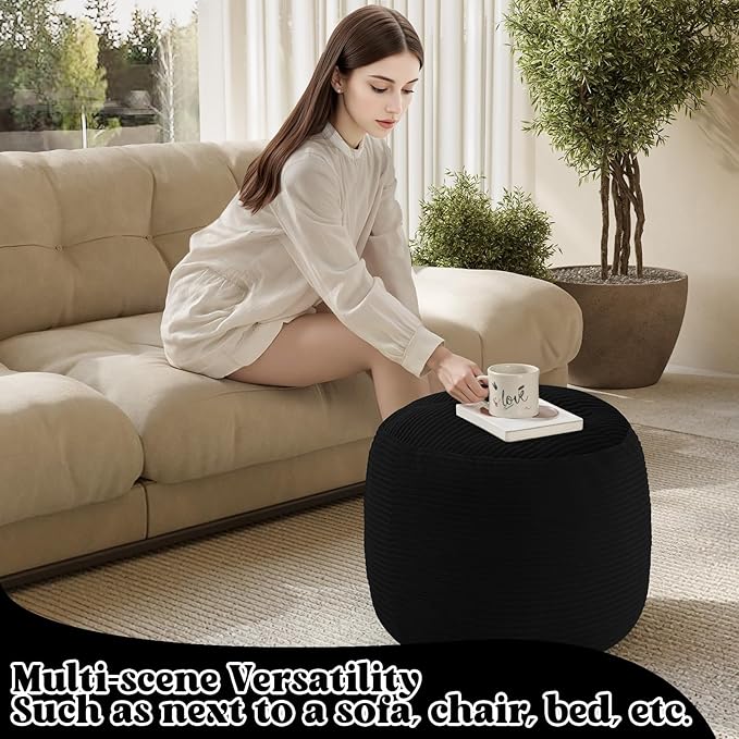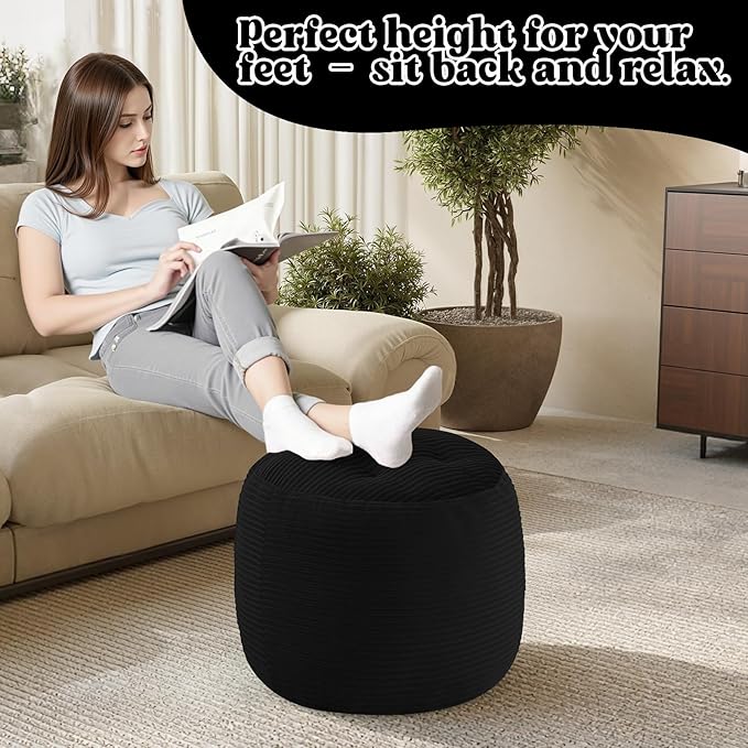MeMoreCool Stuffed Round Pouf Ottoman Foot Rest, Floor Pouf Foot Stool with Soft Foam Chunk Filling, Round Small Ottoman Footstool Circle Footrest for Couch Living Room, Corduroy Black