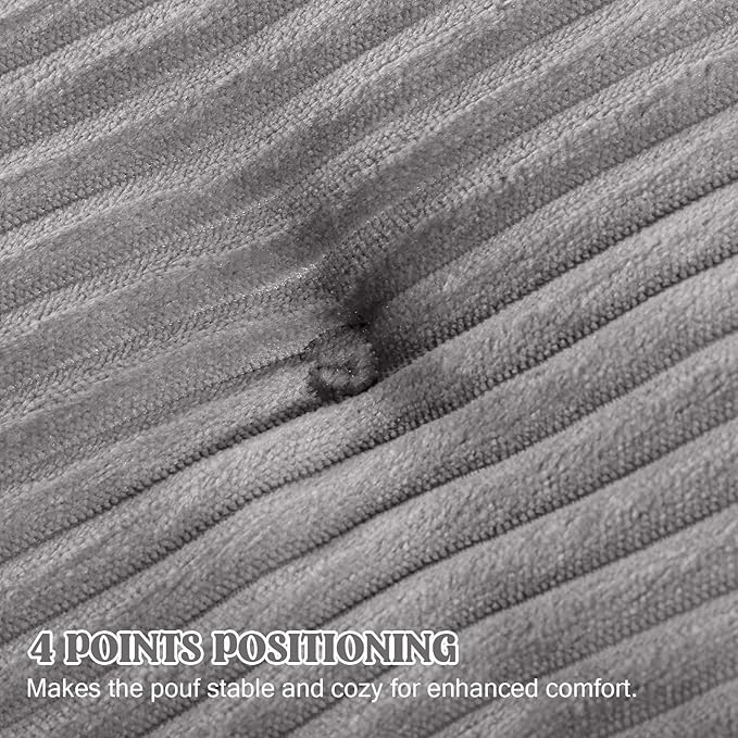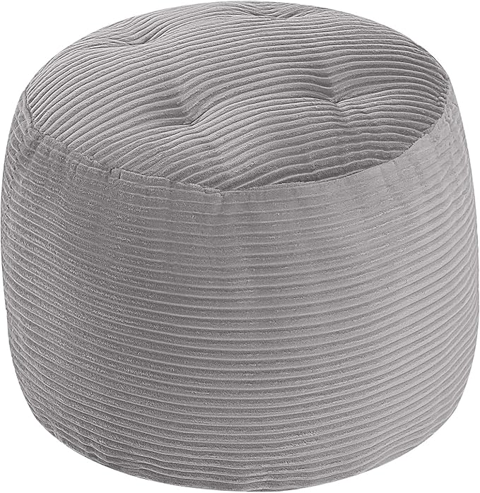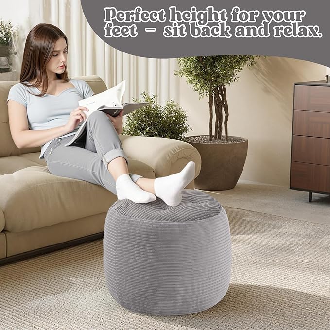 MeMoreCool Stuffed Round Pouf Ottoman Foot Rest, Floor Pouf Foot Stool with Soft Foam Chunk Filling, Round Small Ottoman Footstool Circle Footrest for Couch Living Room, Corduroy Grey