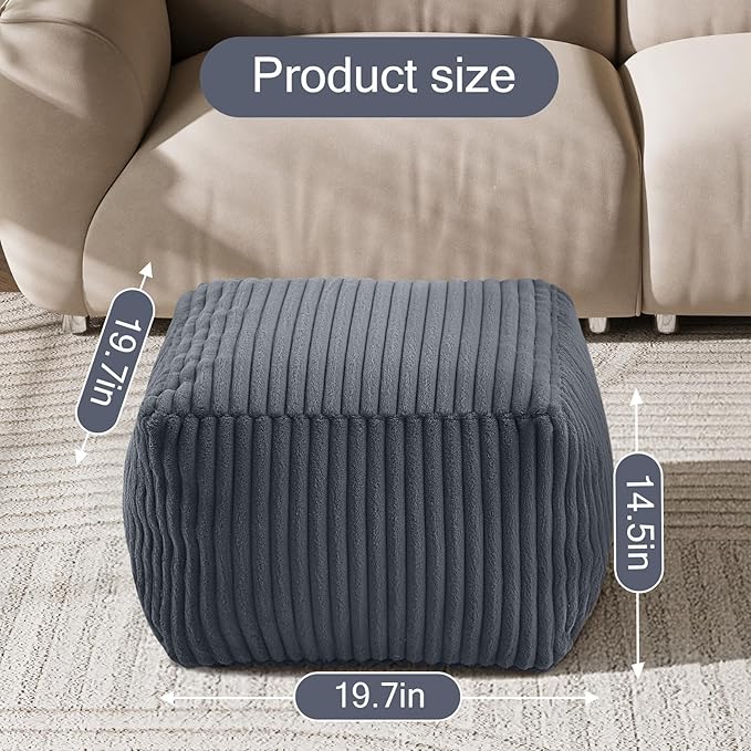 - Modern Square Pouf Ottoman: This soft foot stool pouf blends modern design with plush comfort. Perfectly sized at 20x20x15 inches, this stuffed ottoman foot rest is a chic choice for the couch, sofa, and living room