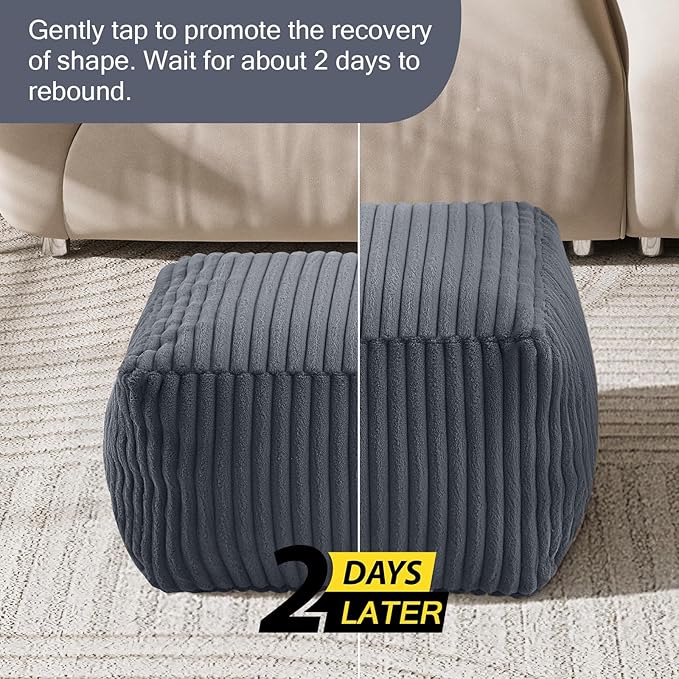 - Premium Filling: The dark grey foot pouf ottoman is filled with high-density shredded foam. This foot stool ottoman with filling offers perfect support while maintaining a compact, space-saving design for a small space