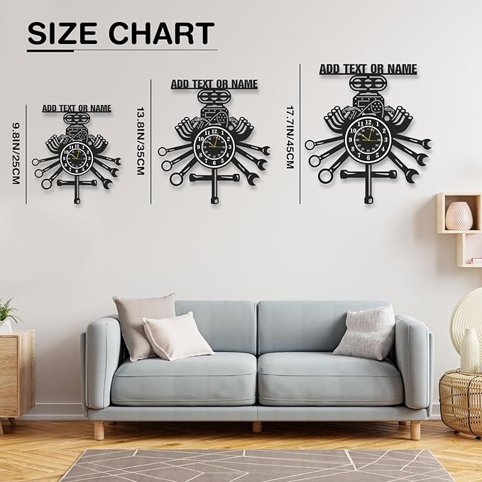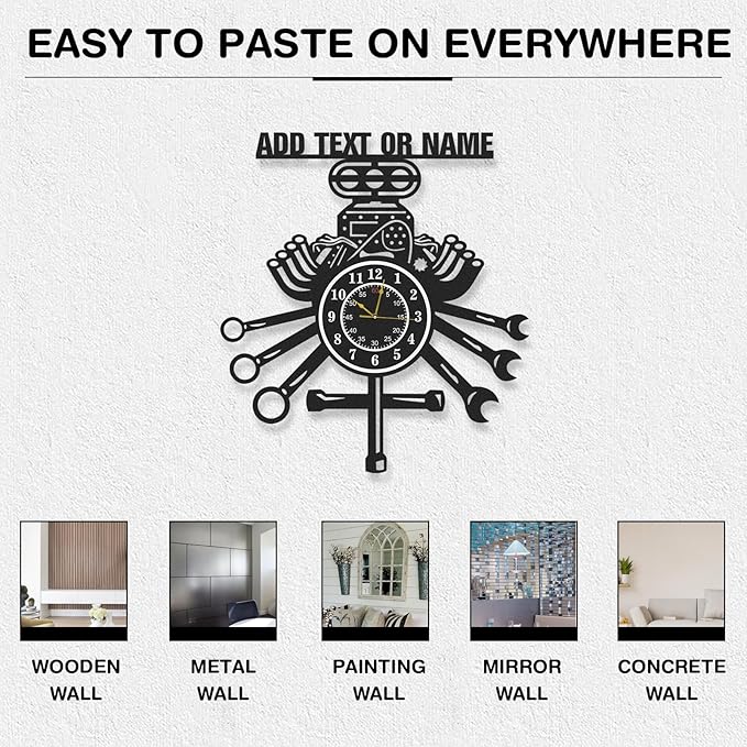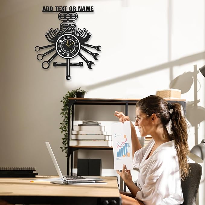 Personalized Garage Wall Clock, Repair Mechanic Tools Decorative Wall Clocks, Silent, Battery Operated, Garage Decor, Custom Name Shop Clocks for Workshop Man Cave, Gifts for Men Color06