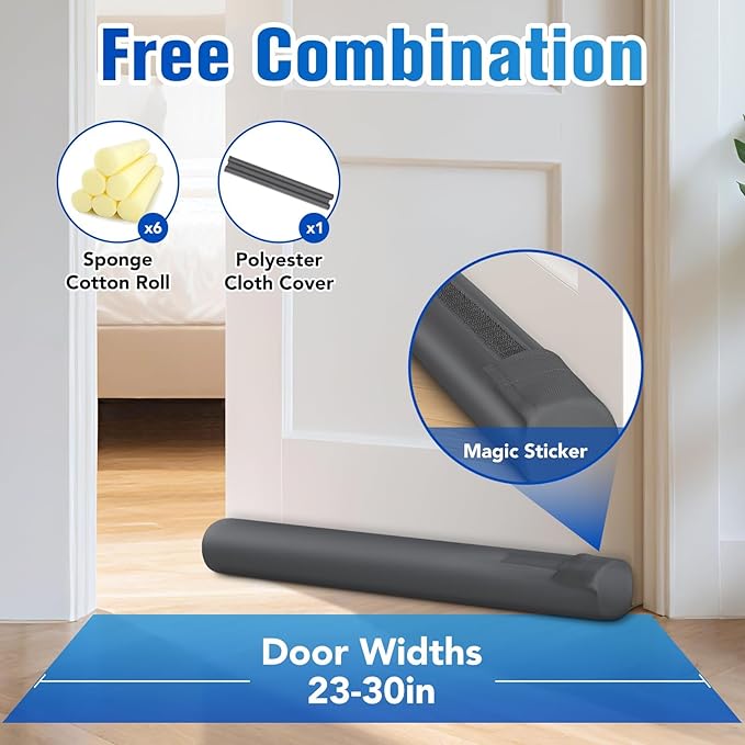 - Adjustable Length: This 30-inch under-door draft stopper is constructed of high-quality sponge and can be easily trimmed to match any door width. Ideal for conventional and custom-sized doors