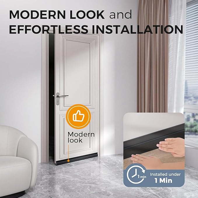 - WONDERFUL DESIGN - Door sweep for bottom of door triple design is adopted to effectively reduce noise, prevent dust from entering through the door, the door stoppers for bottom of door keeps the room quiet and neat. Self-adhesive door draft blocker is very suitable to cover the gaps of exterior/interior doors, rv doors, shower room, baseboard, threshold, windows, garage, basement and furniture