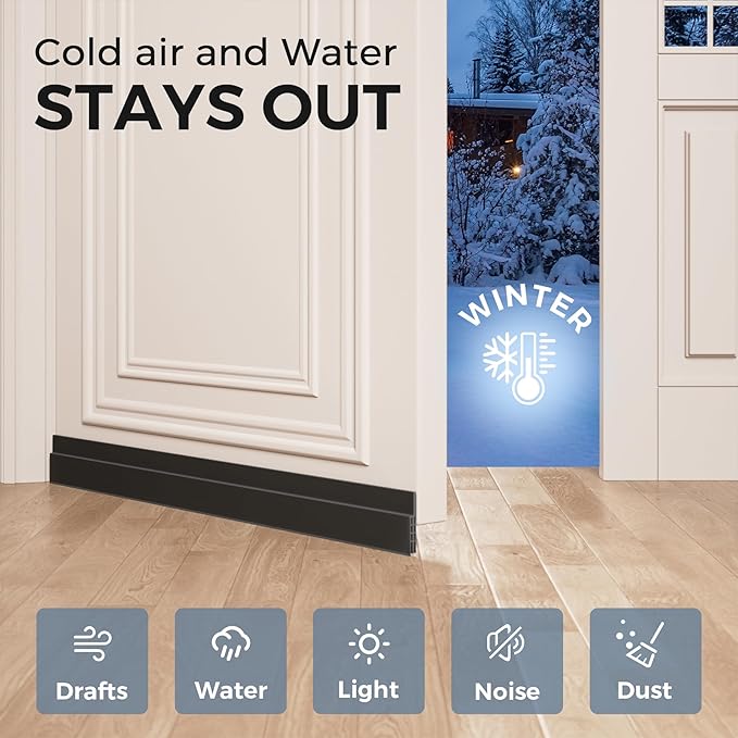 - MULTIFUNCTIONAL: Door Bottom Seal Strip has excellent performance in sound insulation and waterproofing, which can reduce external noise by up to five times; prevent dust and insects from entering the house; help you sleep better and enjoy a comfortable and clean environment at home