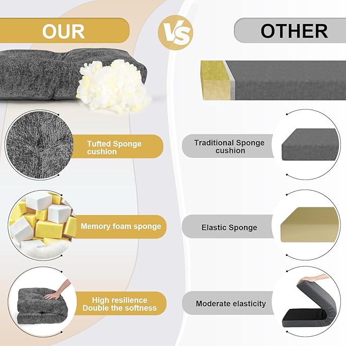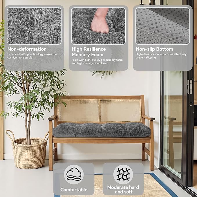 Bench Cushion 42 Inch - Luxury Chenille, High-Density Memory Foam, Non-Slip Bottom, Soft Durable Indoor Tufted Long Seat Cushion for Window Garden Furniture (Gray, 42x16x4 Inch)