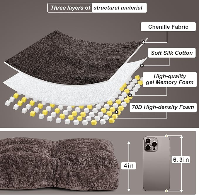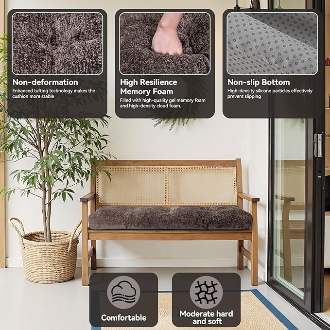 Bench Cushion 45 Inch - Luxury Chenille, High-Density Memory Foam, Non-Slip Bottom, Soft Durable Indoor Tufted Long Seat Cushion for Window Garden Furniture (Brown, 45x18x4 Inch)