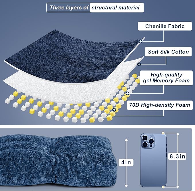 Bench Cushion 36 Inch - Luxury Chenille, High-Density Memory Foam, Non-Slip Bottom, Soft Durable Indoor Tufted Long Seat Cushion for Window Garden Furniture (Blue, 36x14x4 Inch)