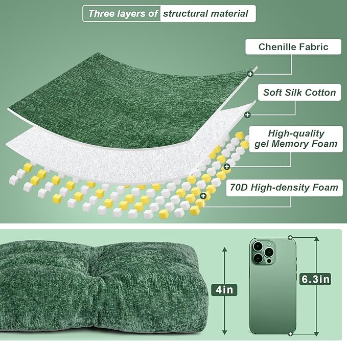 Bench Cushion 36 Inch - Luxury Chenille, High-Density Memory Foam, Non-Slip Bottom, Soft Durable Indoor Tufted Long Seat Cushion for Window Garden Furniture (Green, 36x14x4 Inch)