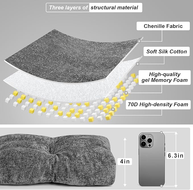 Bench Cushion 45 Inch - Luxury Chenille, High-Density Memory Foam, Non-Slip Bottom, Soft Durable Indoor Tufted Long Seat Cushion for Window Garden Furniture (Gray, 45x18x4 Inch)