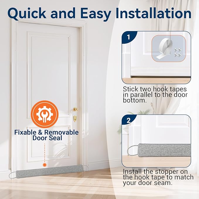 - Save Energy All Season: The draft blocker creates a tight seal under doors to block cold air, hot air, wind, dust, and moisture. Helps retain heat in winter and cool air in summer, reducing energy costs year-round