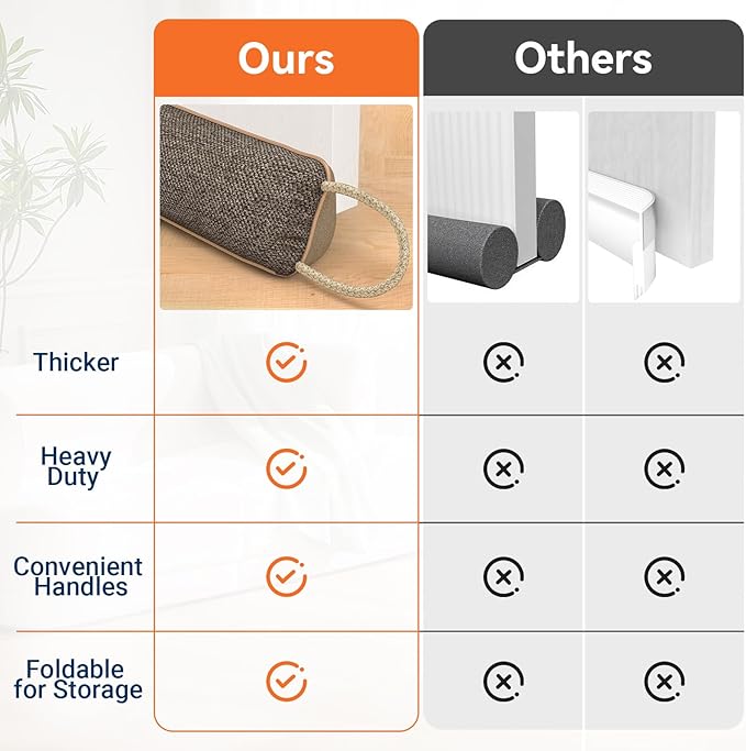 - Save Energy All Season: The draft blocker creates a tight seal under doors to block cold air, hot air, wind, dust, and moisture. Helps retain heat in winter and cool air in summer, reducing energy costs year-round