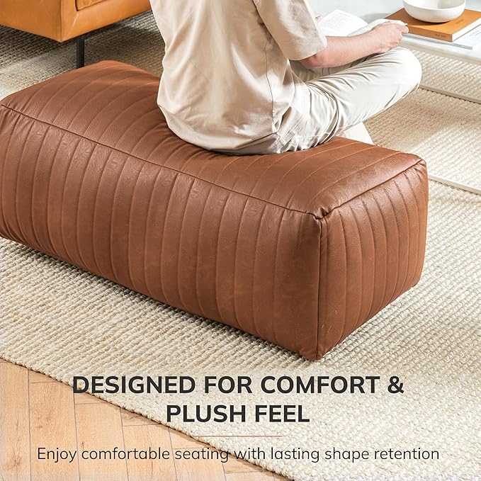 Anji Mountain 100% Handmade & Handcrafted Comfortable Home Décor Bench Pouf Ottoman Footrest for Living Room, Bedroom, Nursery, Kidsroom, Patio Furniture - (42" x 22" x 17" - Cognac)