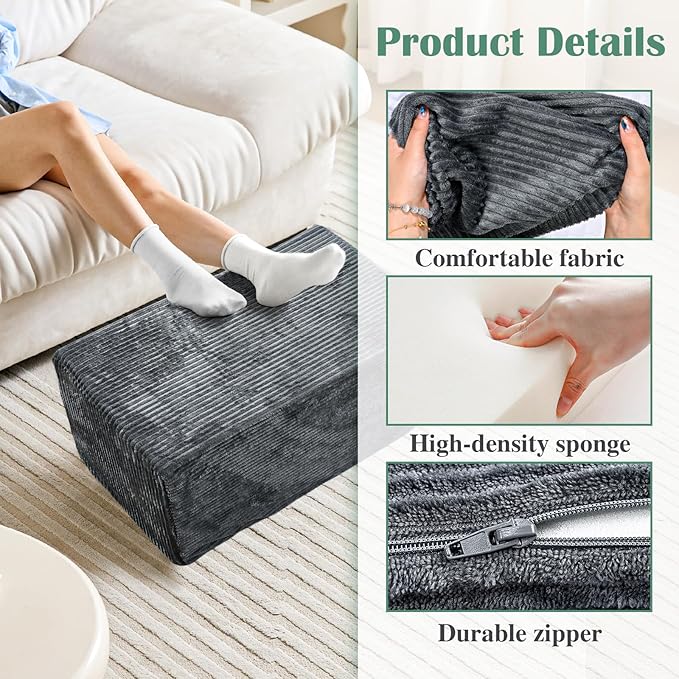 - Pouf Ottoman: Crafted with coral fleece fabric and filled with high-density foam chunks, this ottoman pouf offers exceptional comfort and versatility, making it ideal for use as a footrest, seat cushion, or supplementary seating. Measuring 23.6 x 13.7 x 13.7 inches, it seamlessly complements various living spaces and pairs well with coffee tables, side tables, or serves as a floor cushion in any room