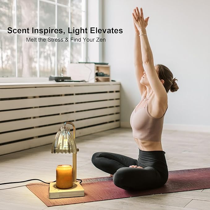 - 【Best Gifts & Perfect Home Decor】 The wax melt warmer Lamp's gold metal lamp pole and wood base with anti-slip pads on the bottom make for a stylish and practical addition to any room! The candle warmer has a soft gold/amber color that complements its surroundings, making it the perfect choice for creating a warm and inviting atmosphere. It is suitable for use in the living room, bedroom, yoga room, and kitchen, so you can enjoy its benefits wherever you go!